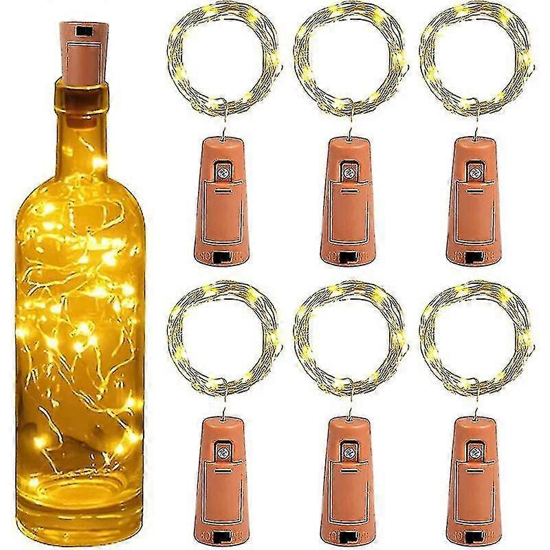 6pcs Led Bottle Garland 2m 20 Led Bottle Light Warm White Bottle Cap Light Waterproof Flexible Silver Wire Decor For Party, Wedding