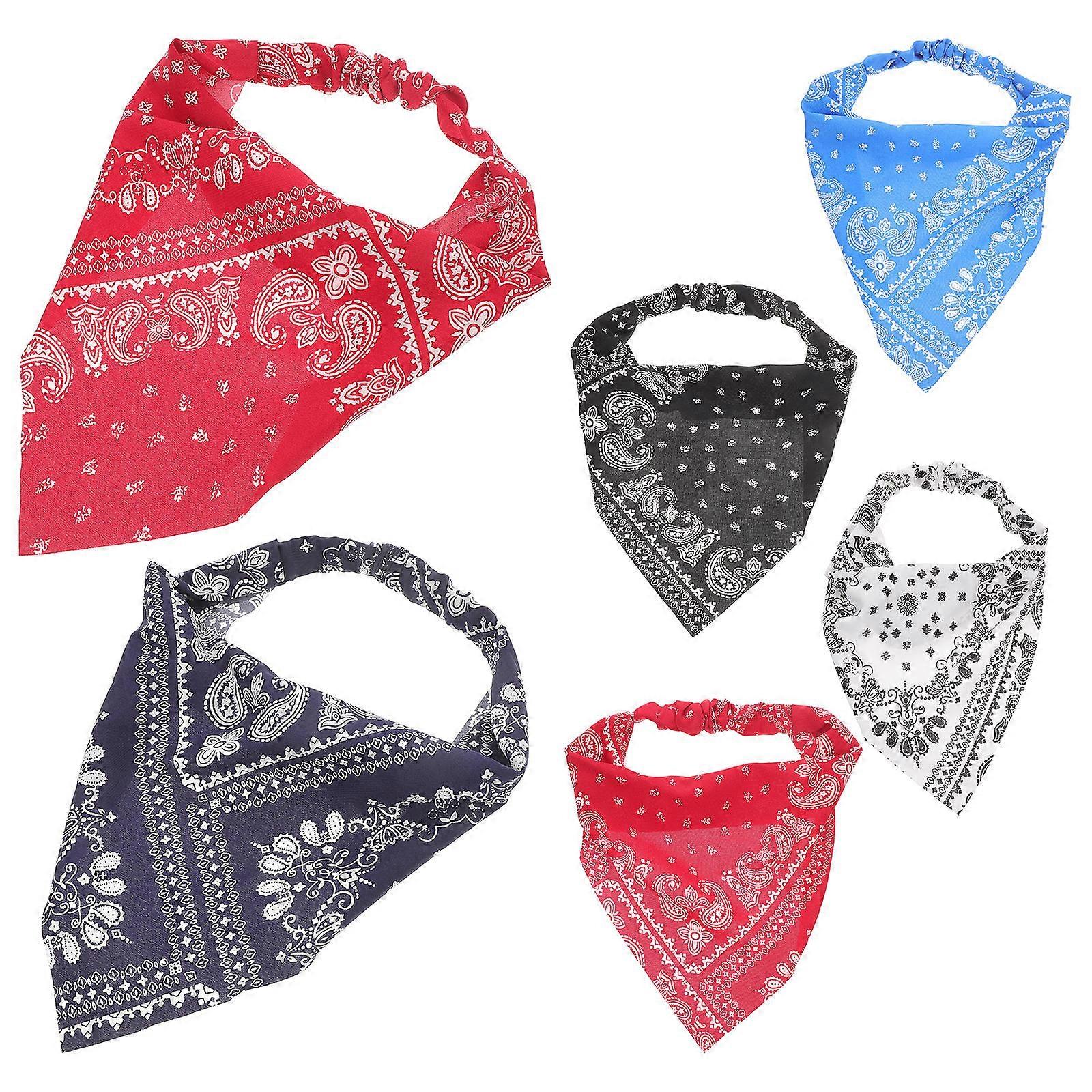 6pcs Elastic Hair Scarves, Lightweight Chiffon Triangle Headbands for Women and Teens, Assorted Colors Including Burgundy, White, Black, Navy Blue,