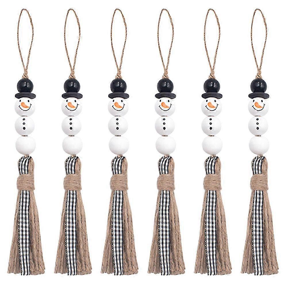 6pcs Snowman Bead Garland Christmas Tree Ornaments Xmas Wooden Bead Decors