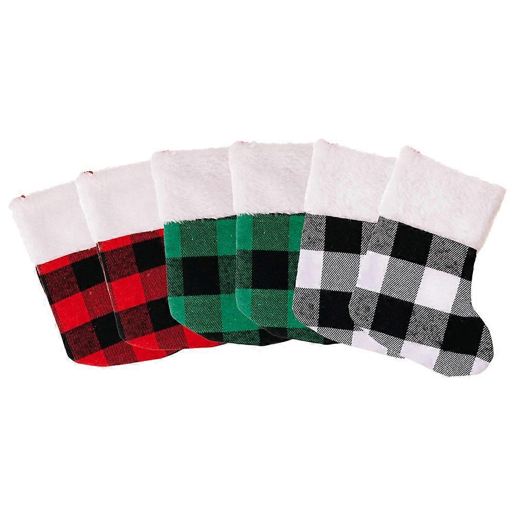6pcs Christmas Stockings Gift Bags Plaid Hanging Socks Xmas Tree Decorations Candy Storage Home Holiday Party Festive Atmosphere