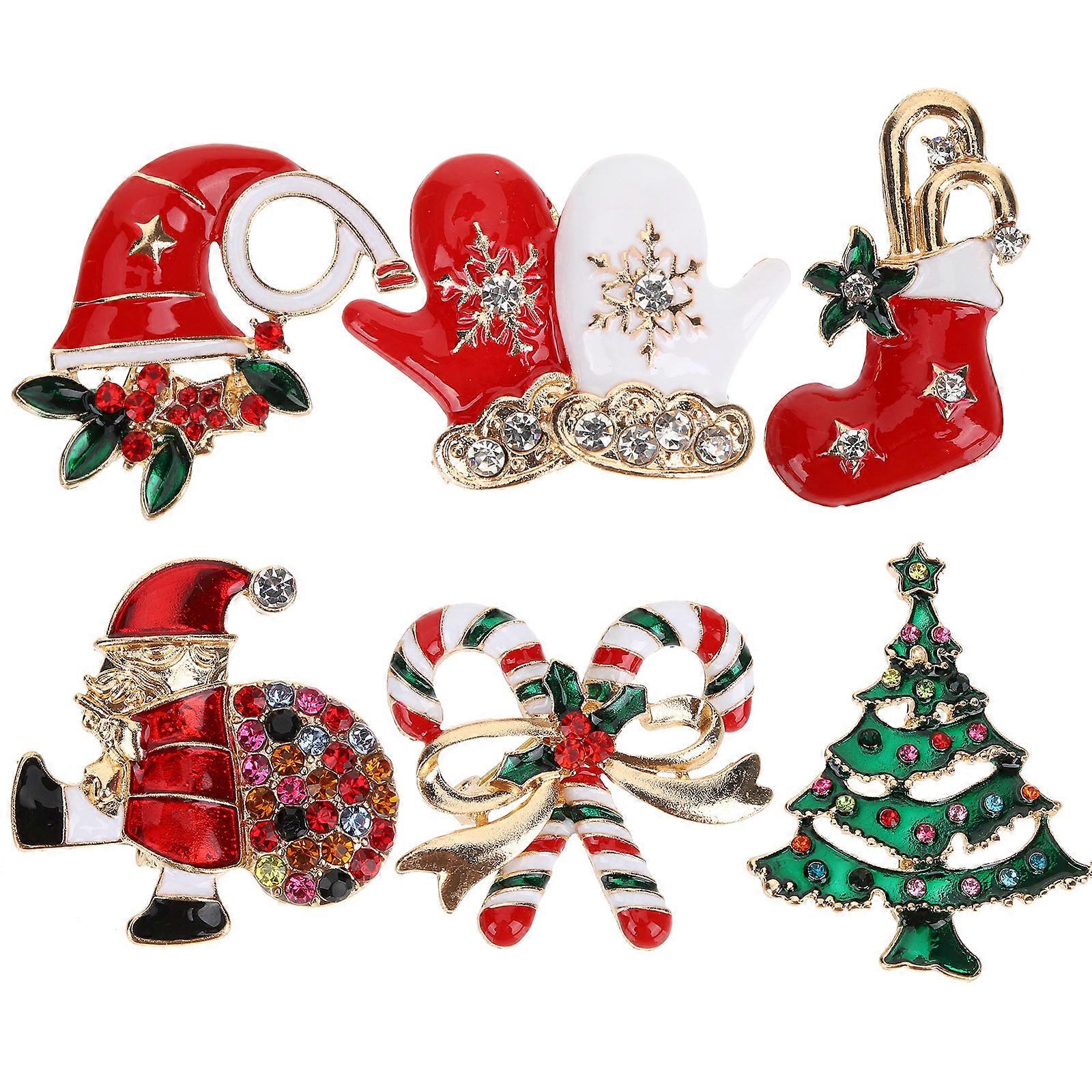 6pcs Christmas Brooch Pins Set Rhinestone Crystal Durable Clothes Brooches for Women Holiday Party Accessories Gift