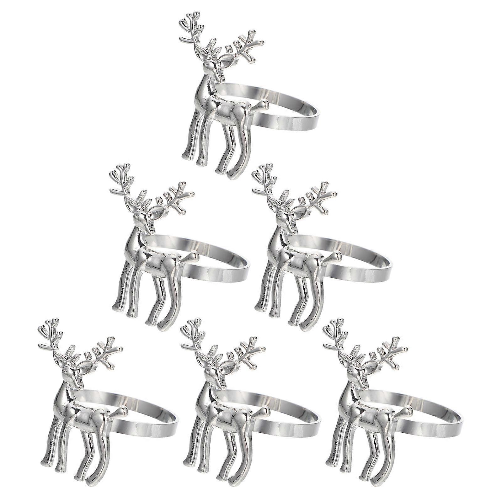 6pcs Alloy Elk Napkin Rings Christmas Table Decor, Reusable Silver Serviette Holders for Parties, Weddings, and Holiday Dinners
