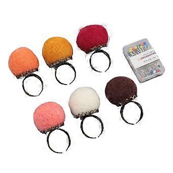 6 قطع شعر دبوس وسادة خواتم مع دبابيس النسيج خمر خفيفة الوزن إصبع دبوس الوسائد للحرف DIY خياطة اللحف الأحمر البني الداكن