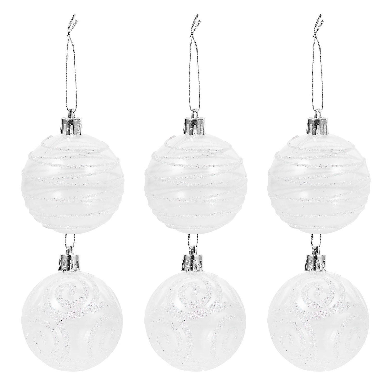6pcs Transparent Christmas Tree Balls with Striped and Spiral Designs for Holiday Party Decorations