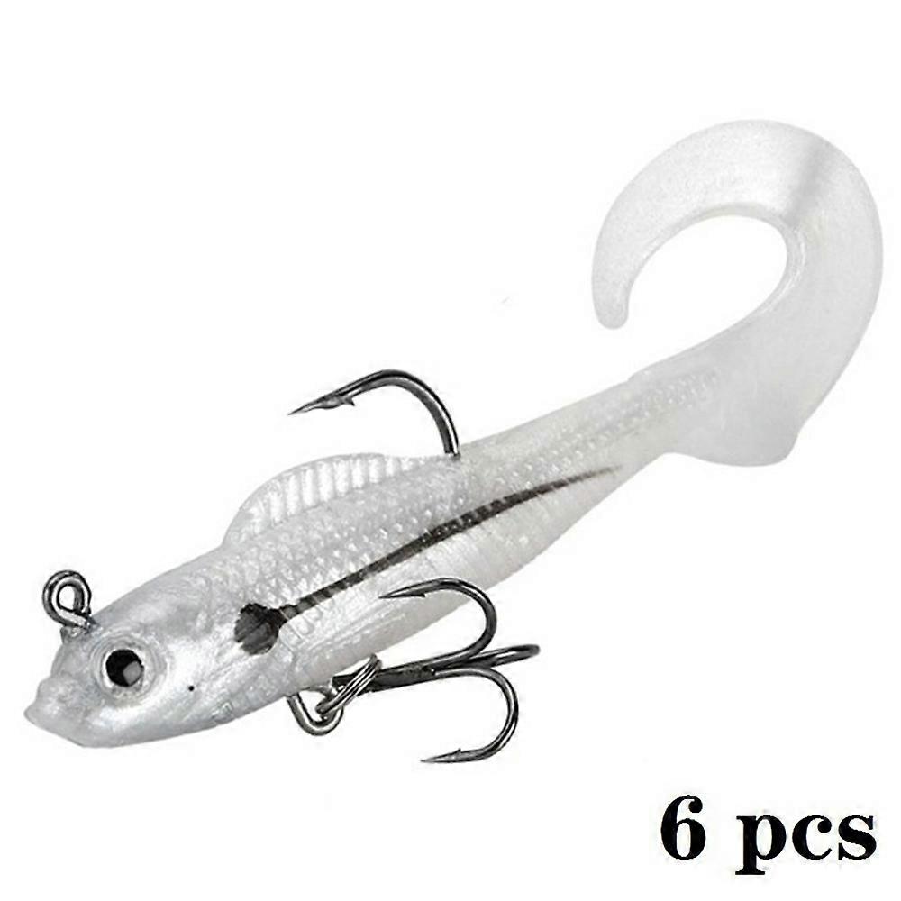 6Pcs Soft Fishing Lures 9cm 9.5g 3D Eyes Red Curly Tail Lead Bait with Storage Box - BQY87F