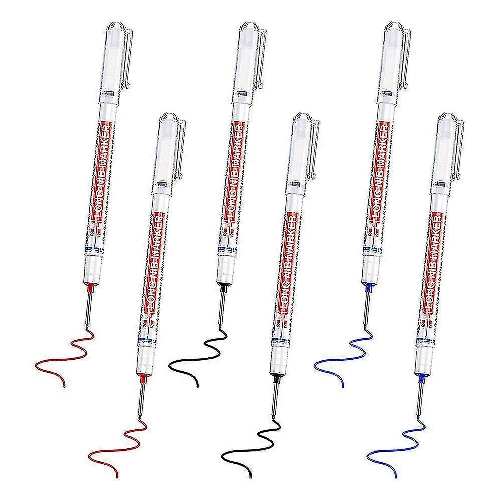6pcs Long Head Deep Hole Marker Multifunction Long Nosed Marker Deep Drill Hole Carpenter Mark Waterproof Marker Pen