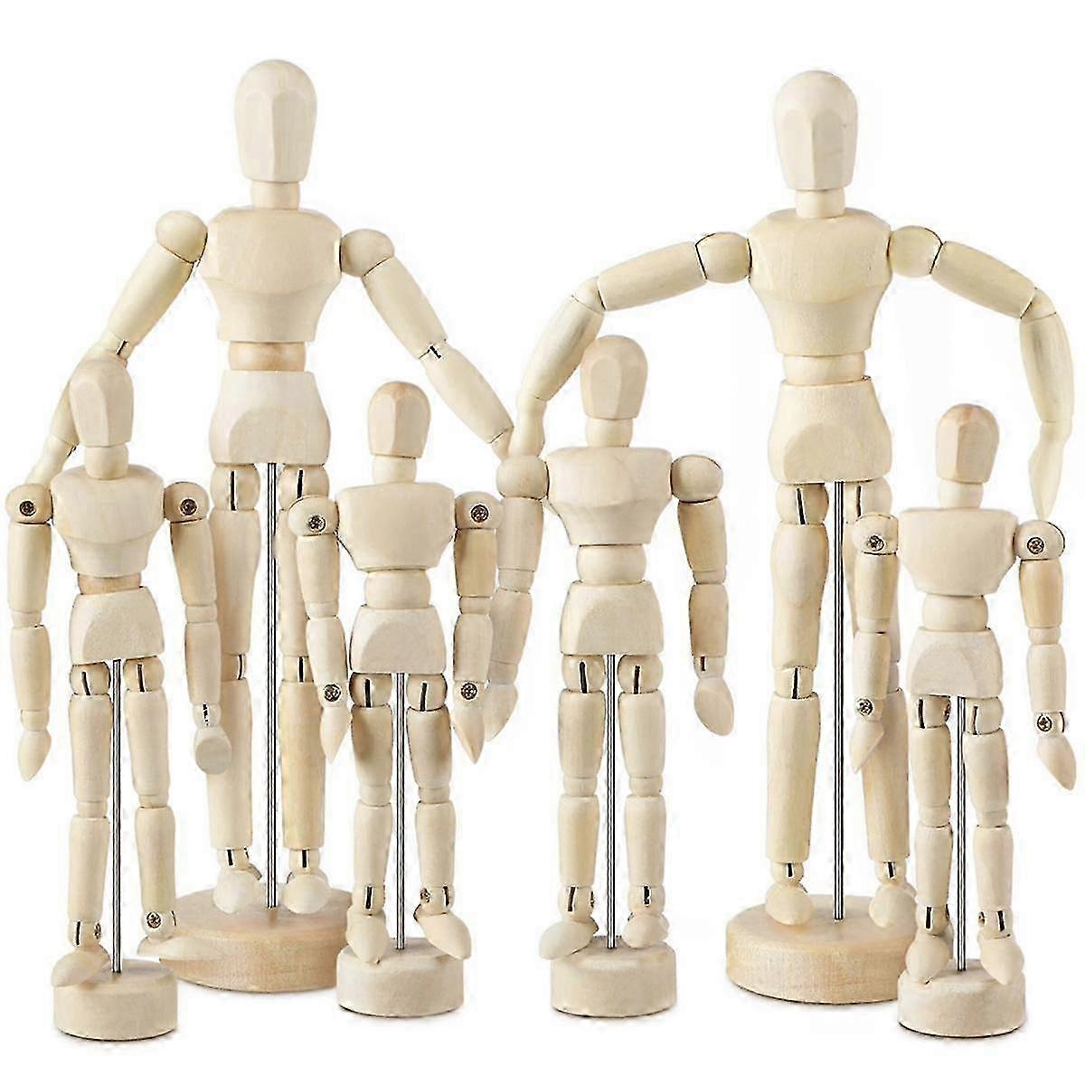 6 Pcs Artist Mannequin Model Wooden Manikin Drawing Moveable Figure Model with Stand Flexible Jointe