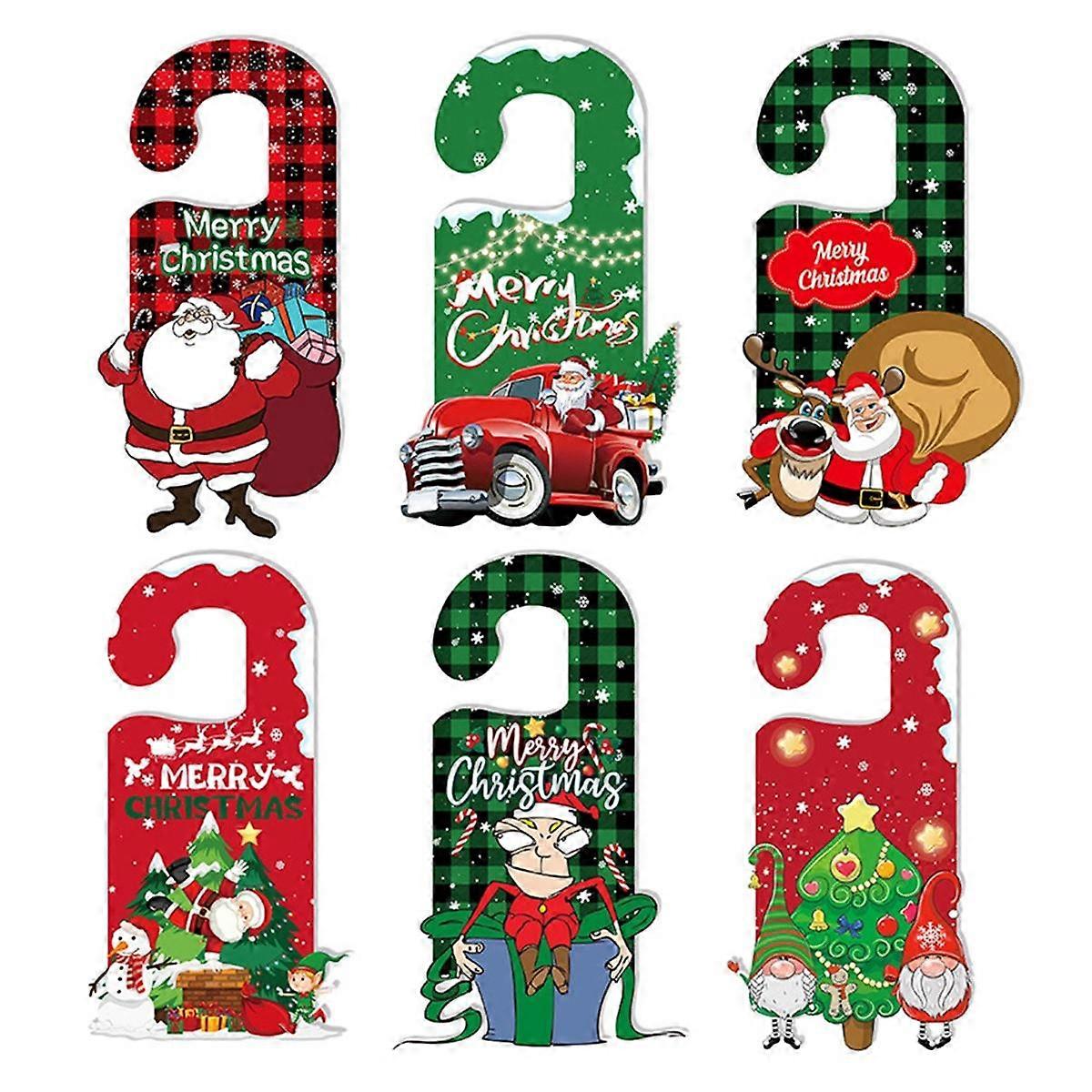 6Pcs Christmas Doorknob Hanger Decoration Christmas Doorknob Ornament Sign Christmas Door Handle Pe