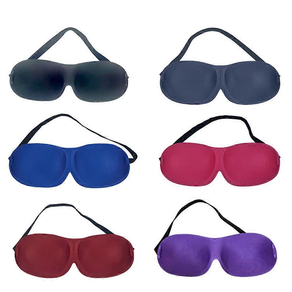 6 Pcs Three-dimensional Sleep Eye Mask Cover Solid Color Eye Patch Nosewingless Eyeshade Blindfold for Home Travel (Black, Blue, Cyan, Rosy, Deep Red,