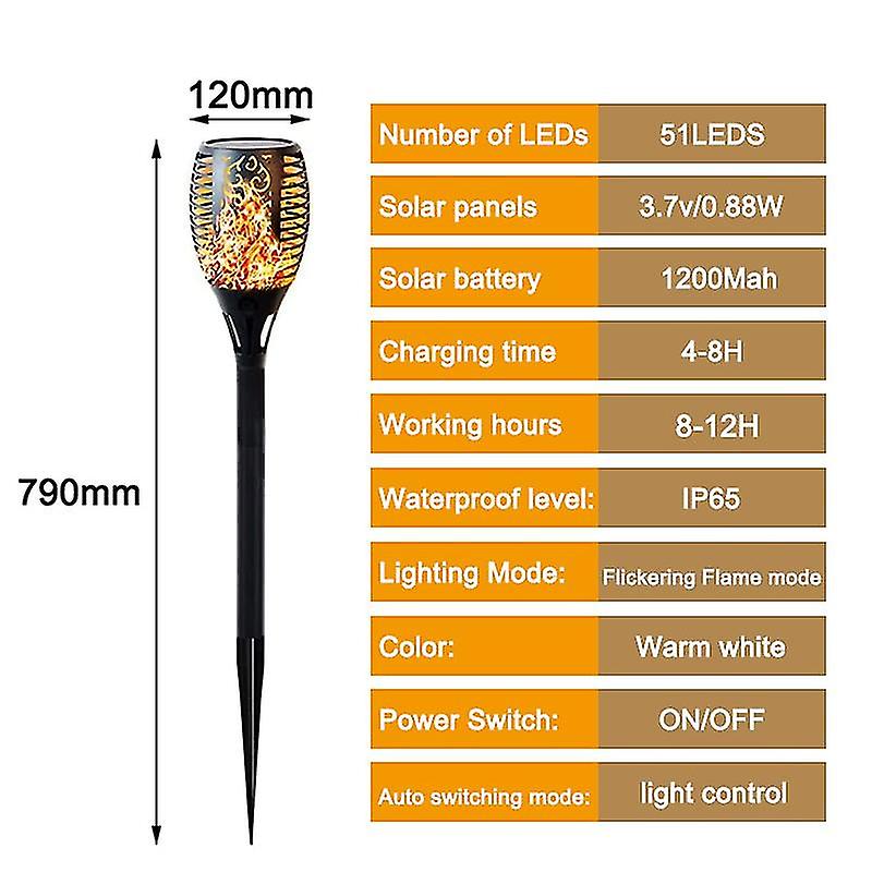 6pcs Outdoor Solar Led Torch Lights Sunlights Flashlight Waterproof Garden Decoration Lantern For Patio Street Balcony Yard Pathway