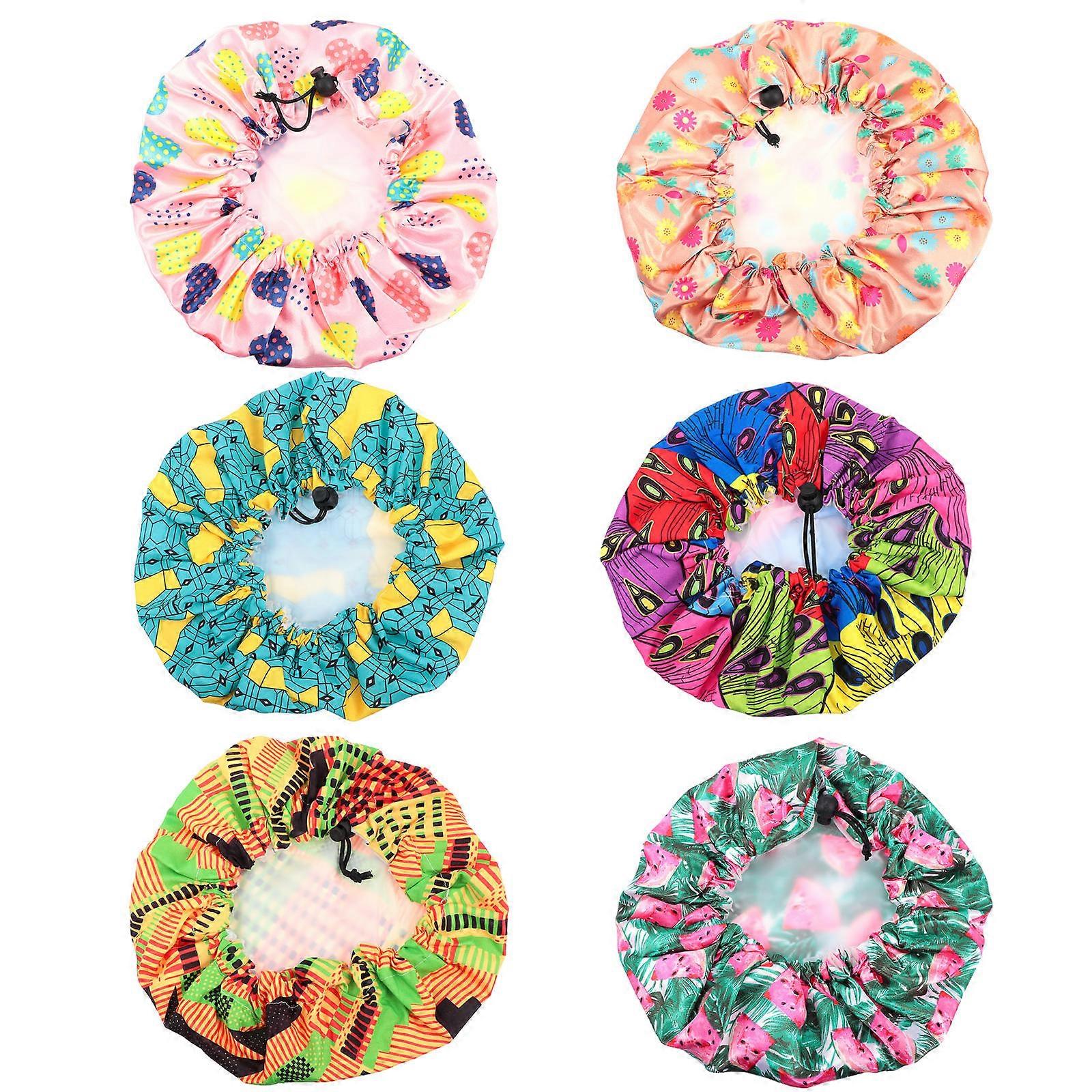 6pcs Adjustable Double Layer Shower Caps Cute Bathing Accessories for Boys Pink Heart, Green Watermelon, Sunflower, Colorful Peacock, Blue