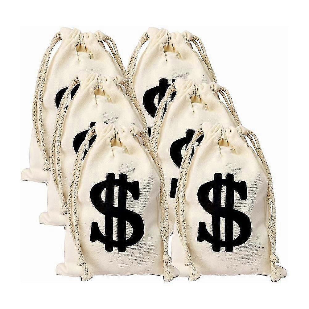 6 Pcs Canvas Gift Bags Dollar Sign Money Pouch Money Dollor Sign Bag Pirate Money Bags