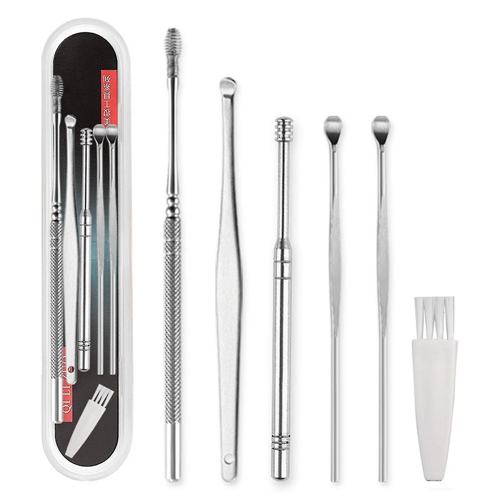 6 Pcs/set Earwax Removal Kit, Ear Wax Removal 6-in-1 Ear Pick Tools Reusable Ear Cleaner, Stainless Steel Ear Pick Set With Box