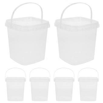 6 قطع مربع واضح دلو صغير مع غطاء الآيس كريم دلو الحليب الشاي الفشار دلو 1L