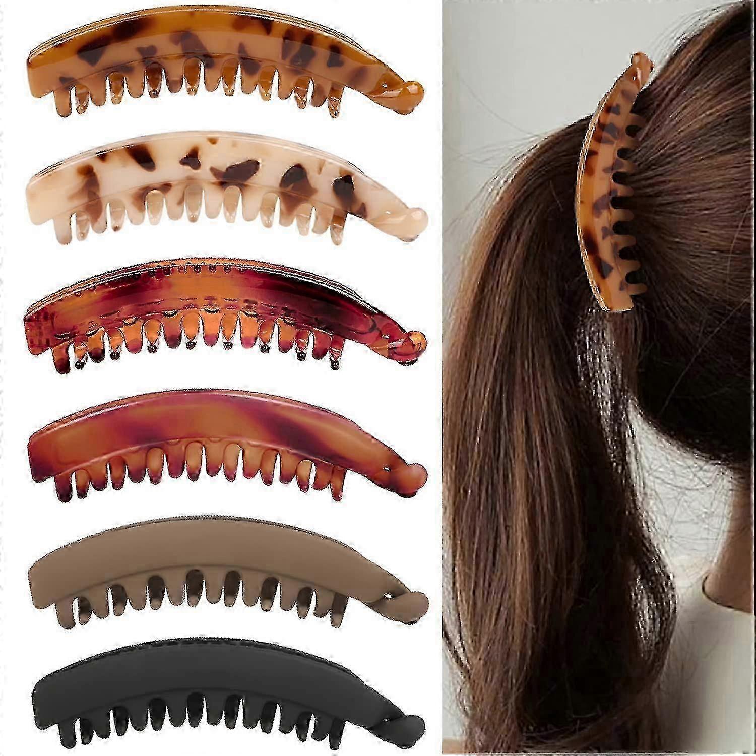 6 Pcs Large Banana Clip 5.3 Inch Banana Clips Hair for Thick Hair, Non-slip Banana Hair Clips for Fine Hair, Strong Hold Banana Clips for Women and Gi