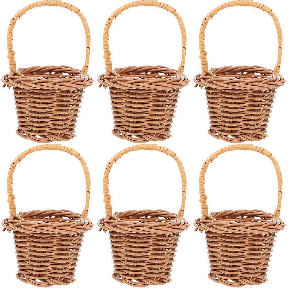 6Pcs Mini Flower Basket Small Woven Basket Decorative Tiny Rattan Basket Handheld Mini Basket Decor