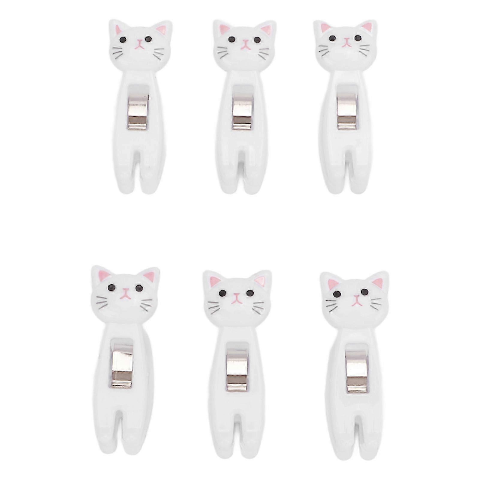 6Pcs White Metal Anti-Slip Snack Clips with Firm Spring Grip for Cats
