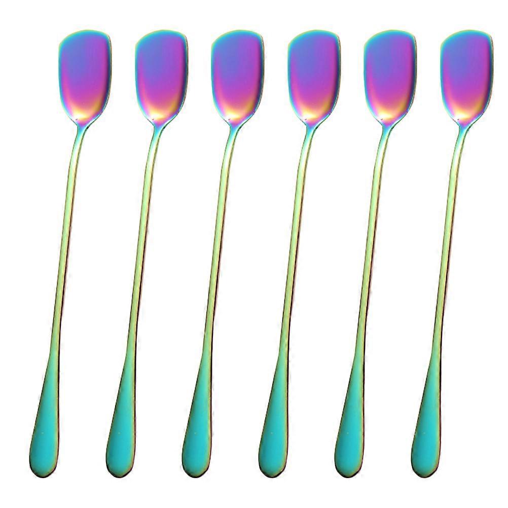 6pcs Stainless Steel Ice Spoons Long Handle Stirring Ice Cream Spoon Cocktail Spoons (Colorful)