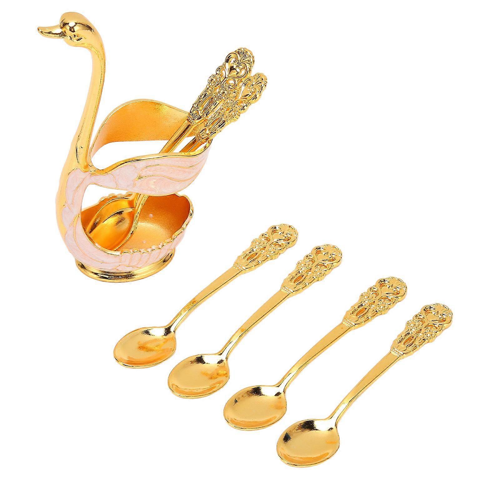 6Pcs Aluminum Coffee Spoon Set with Swan Base Holder for Dessert Ice Cream Tea Spoon Set