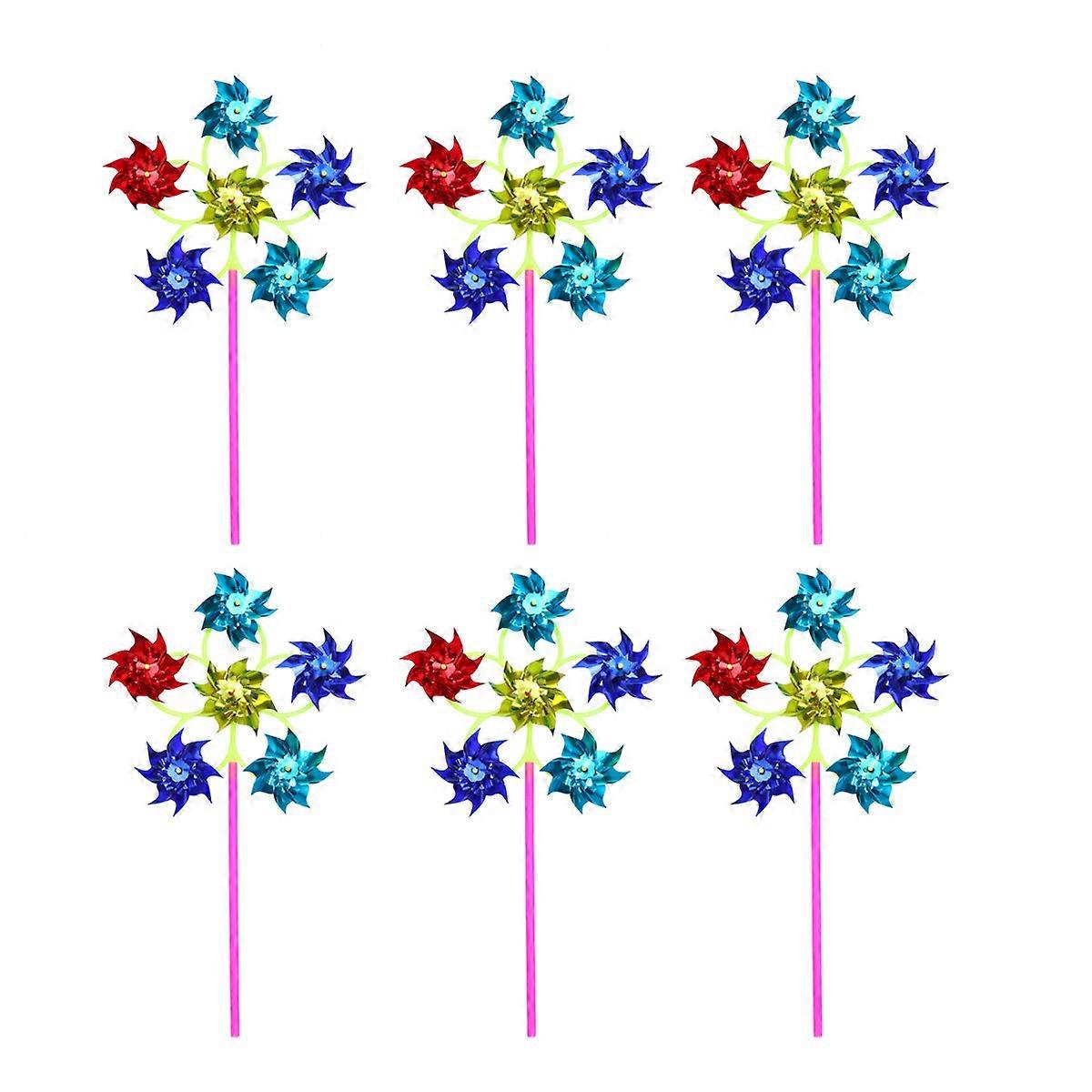 6pcs Colorful Plastic Windmill Pinwheel for Outdoor Garden Decoration, Durable Design for Lawn and Party Use