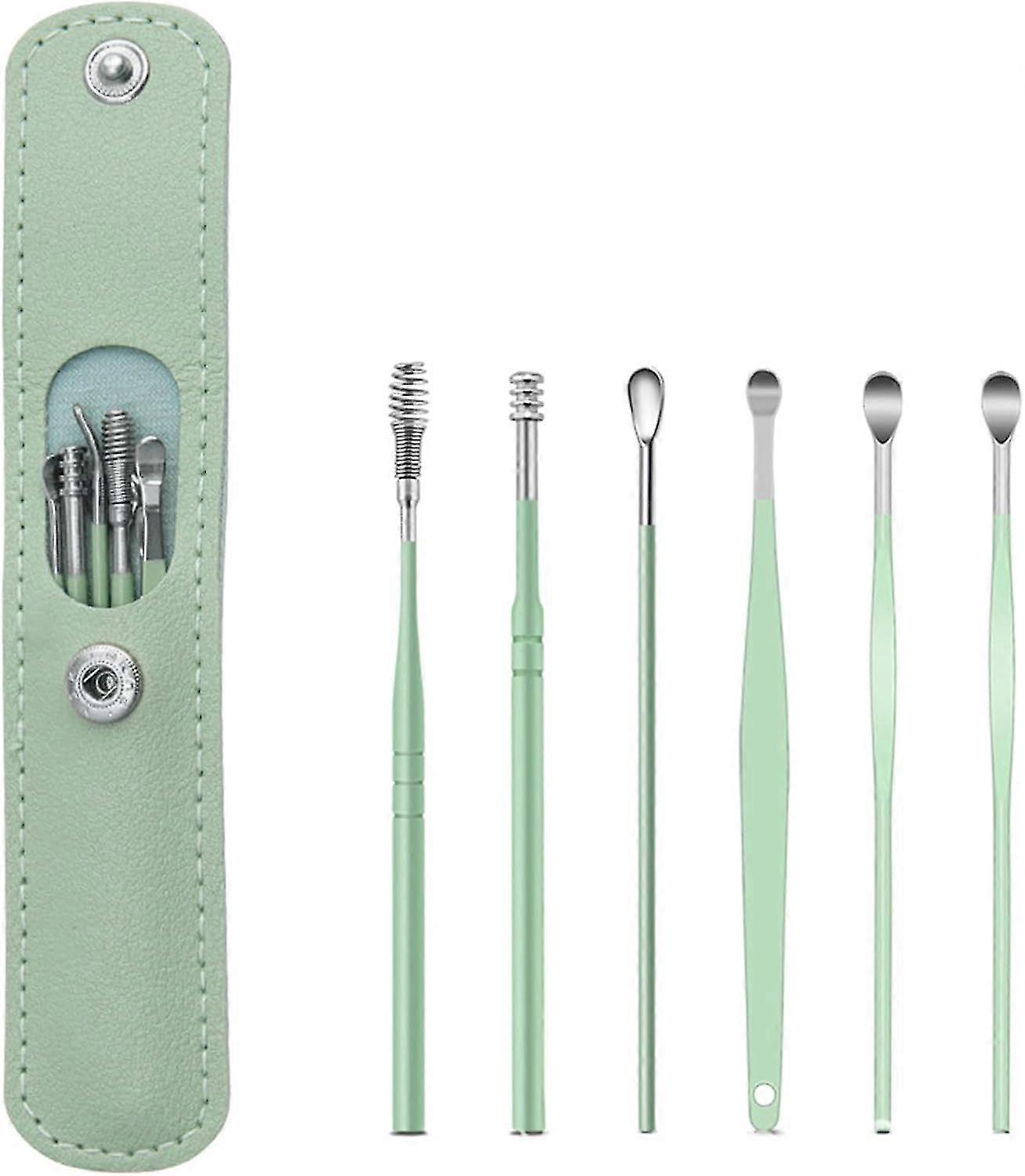 6 Pcs Stainless Steel Ear Spoon Ear Wax Cleaner,reusable Ear Wax Remover Set For Personal And Home Use Ear Cleaner Tools (green)
