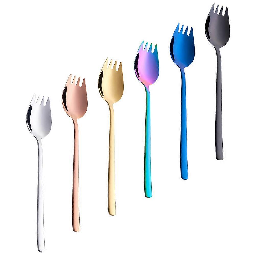6pcs Stainless Steel Sporks Dual use Fork Spoons for Dessert Home Supplies