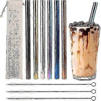 6pcs Bubble Tea Straws Stainless Steel Drinking Straws Metal Straw Colorful - 12mm Wide Straws For Boba Beads, With 3 Brushes And 1 Carrying Bag