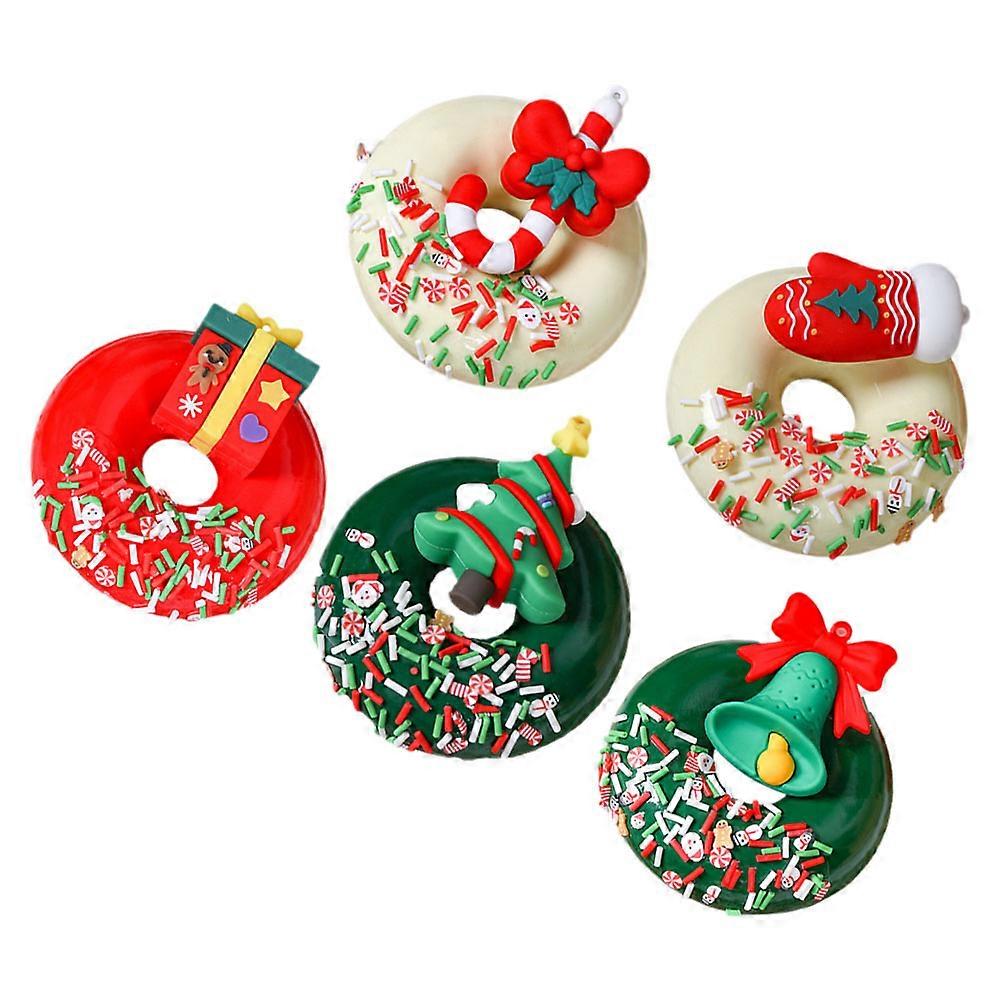 6pcs Christmas Themed PVC Simulated Donut Models for Home Decor, Photography Props, and Desktop Ornaments