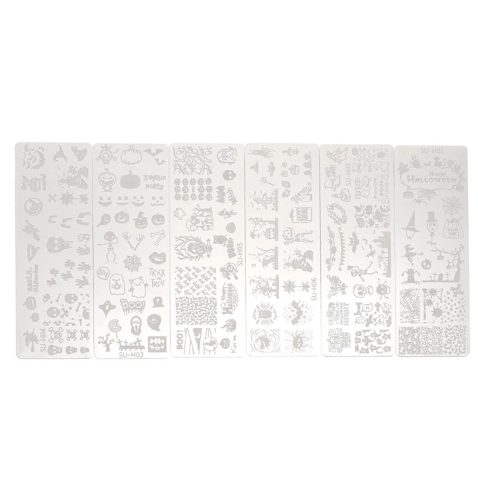 6pcs Halloween Manicure Stencils Nail Art Stamping Templates Nail Polish Kit