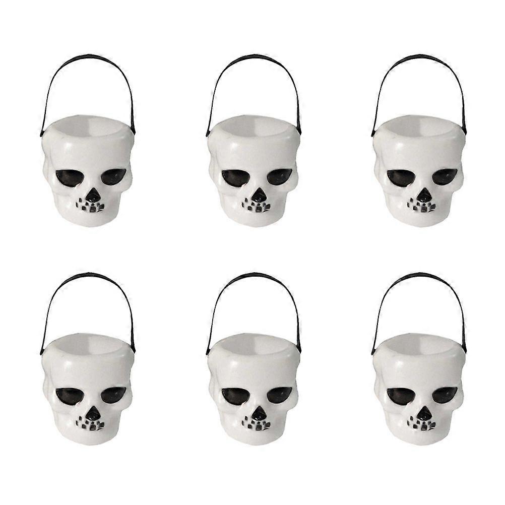 6pcs 6x5.5cm Halloween Candy Bucket Skull Heads Shaped Trick or Treat Candy Pail Holder (White)