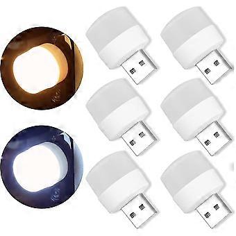 6 Pcs Usb Plug Lamp Usb Night Light Mini Usb Led Light Usb Atmosphere Light Small Round Night Light