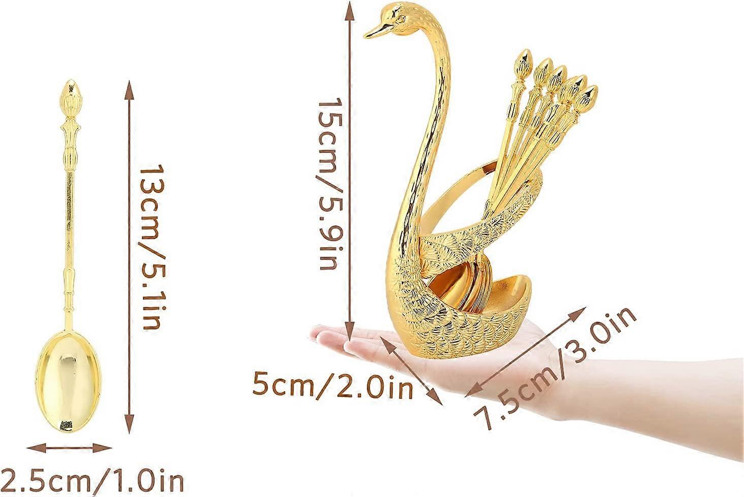 6 Stainless Steel Teaspoons, Swan Teaspoons for Dessert Ice Cream, 5.1 inch(Gold)