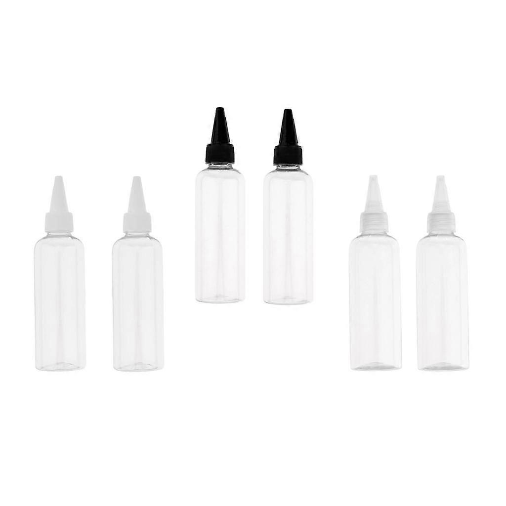 Description: The Empty Squeezable PET plastic bottle is great for liquids, soaps, lotions, shampoo, aromatherapy, essential oils, nail products, arts, crafts and more. Pointed s in black + white + clear for you choose Light-weight and portable size. Perfect for traveling or in your beauty pouch acity: 100ml/3.5oz; Diameter: 3.9cm/1.5inch; Height: 15.2cm/5.98inch Package Includes: 6 Pieces Bottles