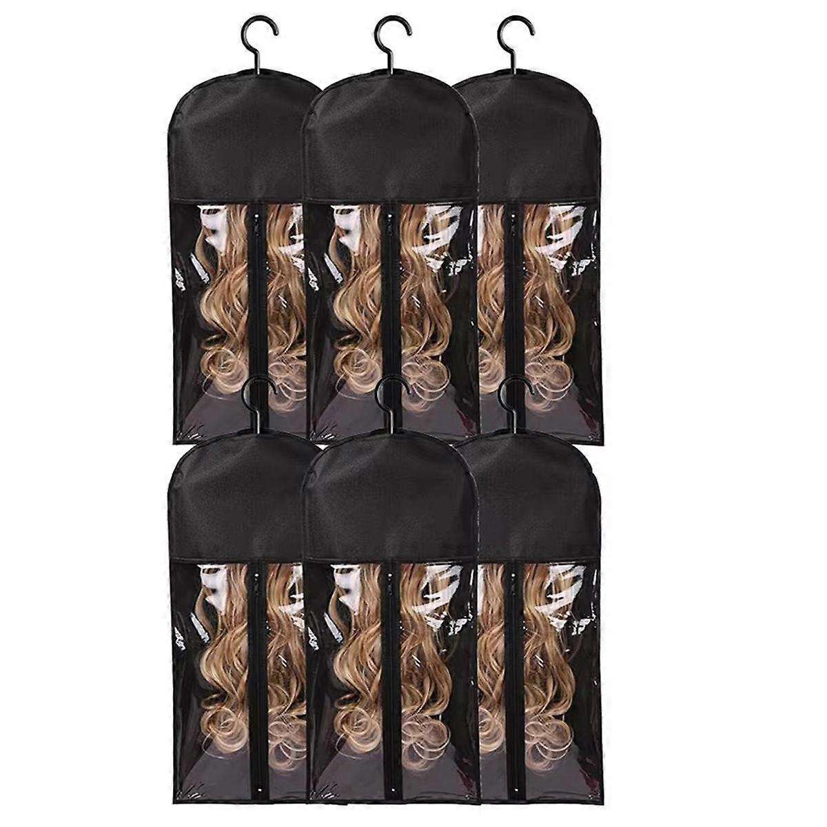 6pcs Long Hair Extensions Storage Bag Non-Woven Dust Proof Wigs Carrier Bags with Hanger for Home S