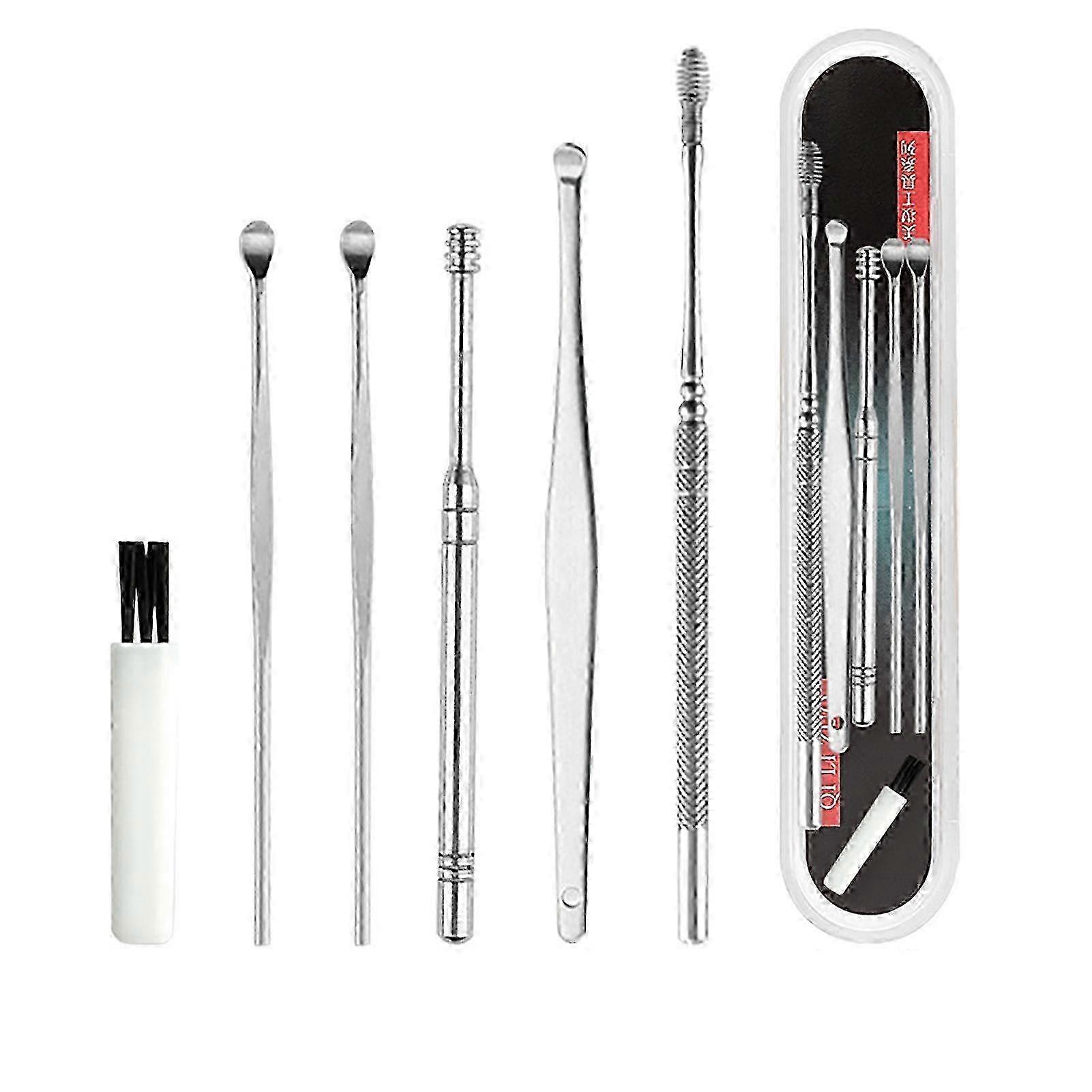 Ear Wax Removal Tool Set Stainless Steel Ear Cleansing Tool Kit with Brush Material Cleaning Brush6 Piece Set