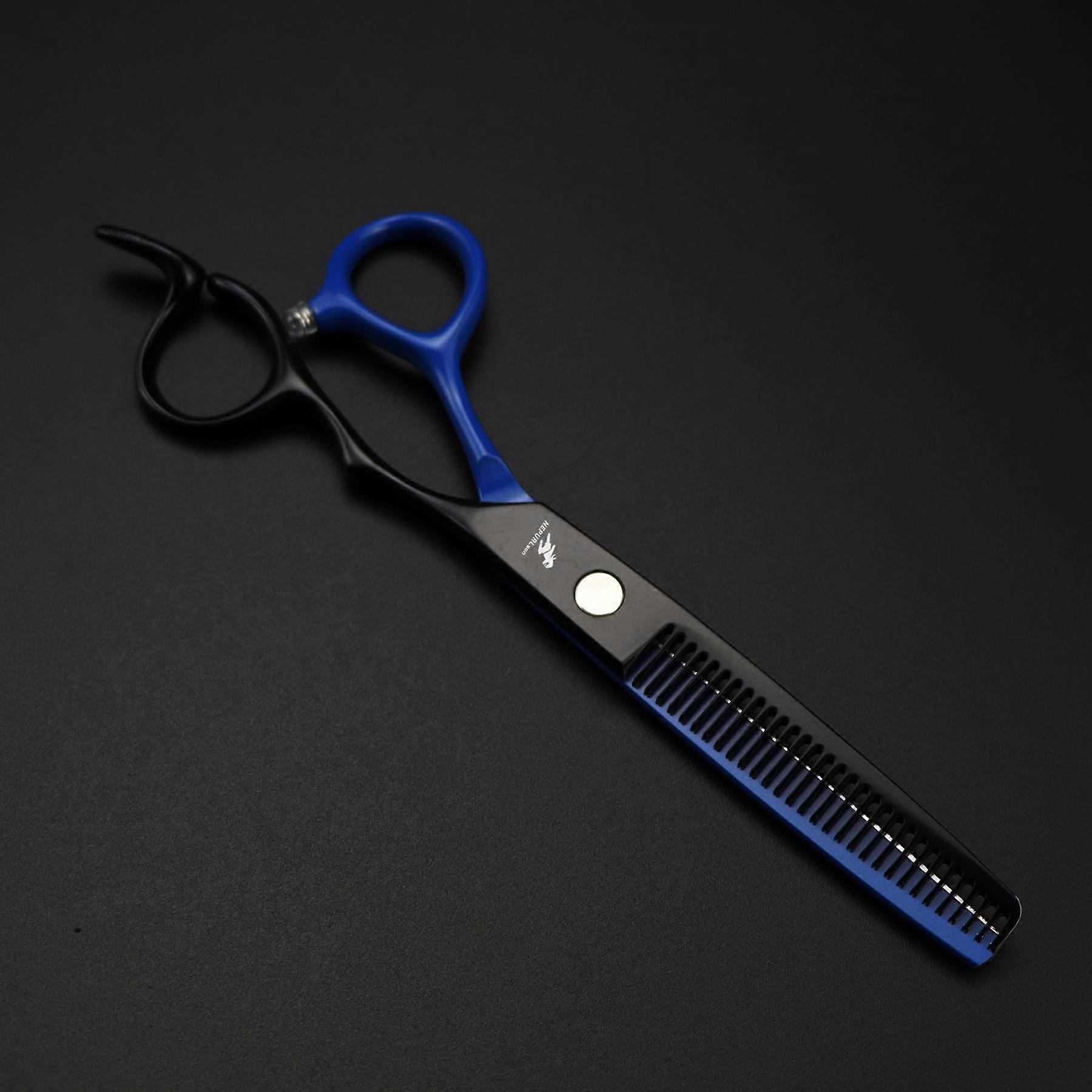 6.0 Inch Black And Blue Notched Handle Hairdressing Scissors Haircuts Flat Scissors Bangs Teeth Scissors Thin Scissors