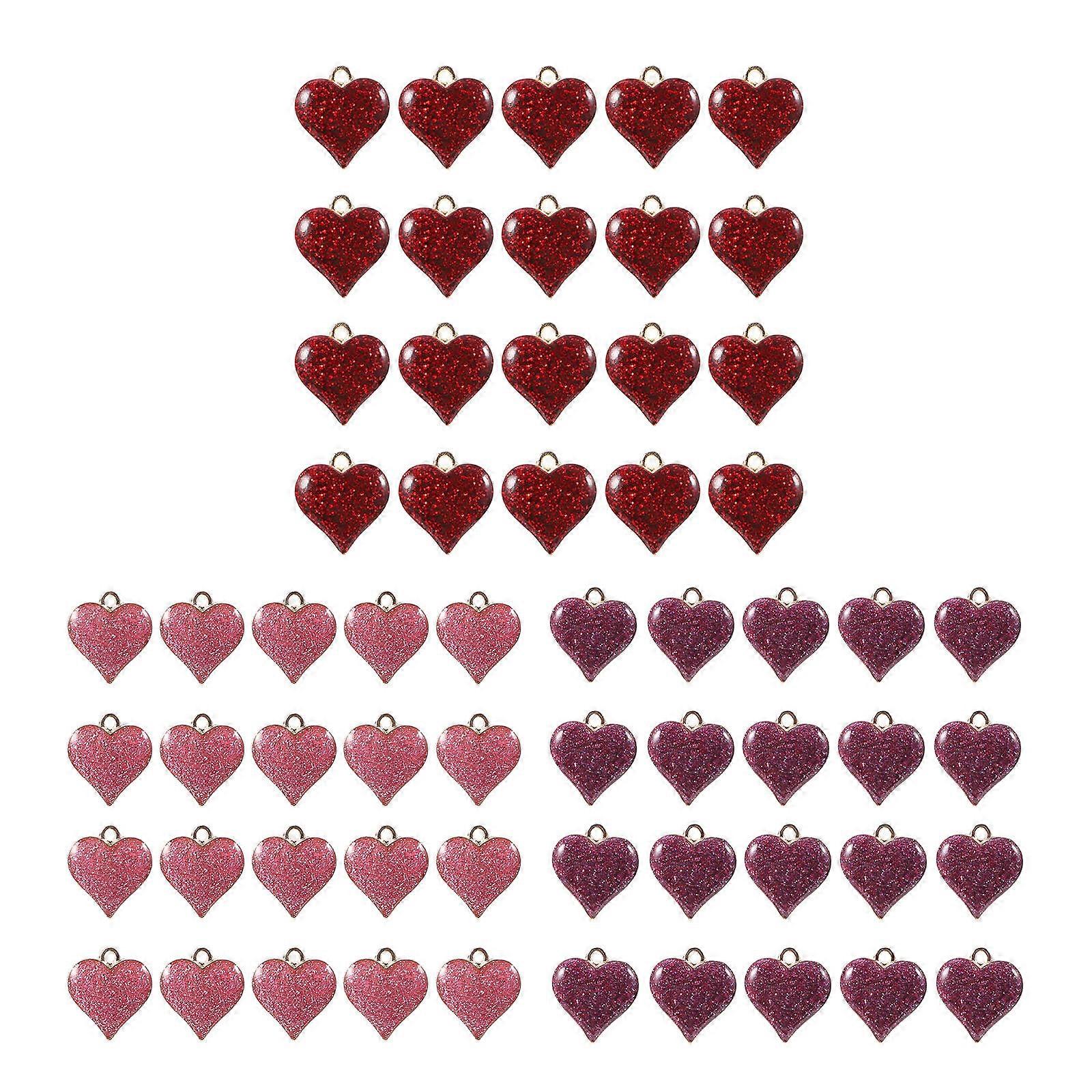 60pcs Glitter Heart Charms for DIY Jewelry Making – Heart Shaped Pendants for Bracelets, Necklaces, and Earrings, Perfect for Valentine’s Day