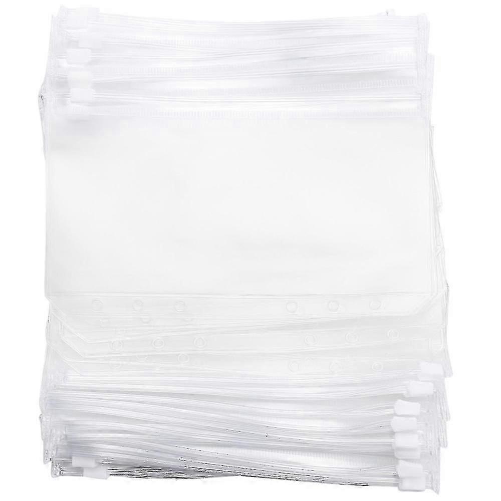 60 Pcs A6 6-Hole Translucent Plastic Zipper Binder Pockets, Waterproof Document Folders