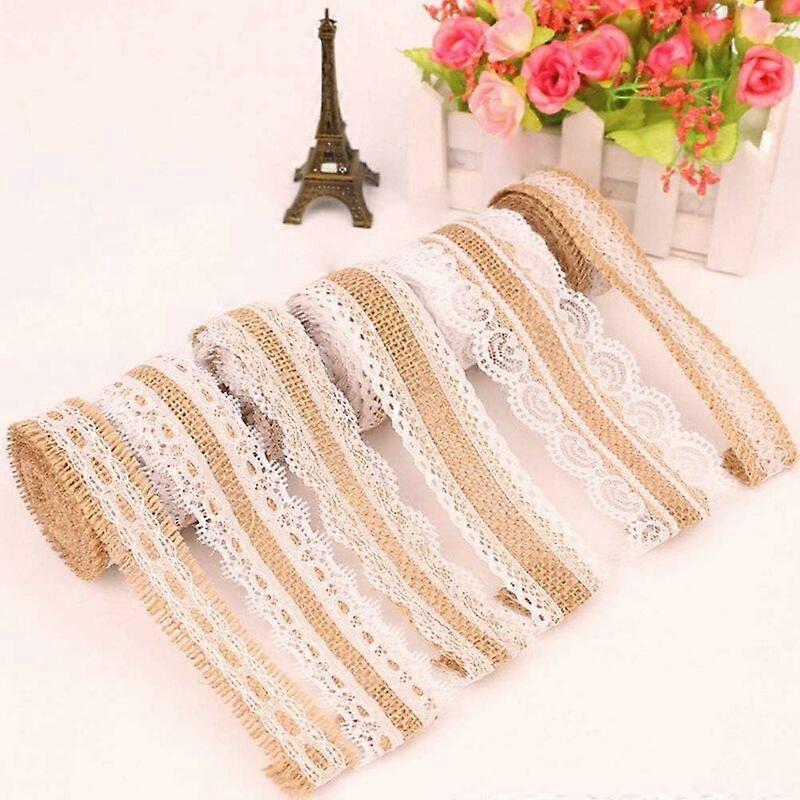 6M Jute Lace Ribbon, Vintage Natural Burlap Ribbon, Natural Hessian Ribbon with White Lace, DIY Wedding Decoration, Gift Wrapping, Wedding Decor Craft