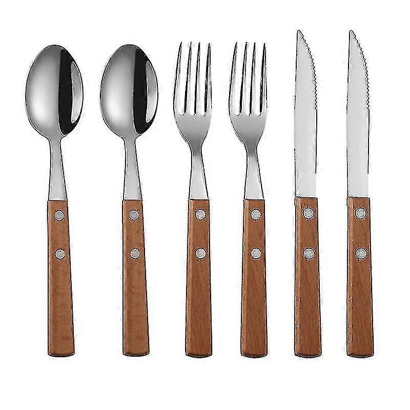 6pcs/set Stainless Steel Cutlery Set With Wood Handle Holder Fork Spoon Knife Set Kitchen Dinnerware