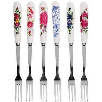 6pcs Ceramic Handle Dessert Fork Multi-function Small Fork Portable Fruit Fork Dessert Supply