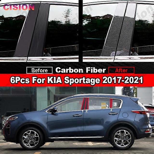 6x Black Mirror Effect Car Window Door Column B C BC Pillar Post Cover Trim PC Material Sticker For For KIA Sportage 2017-2021