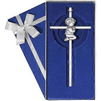 7-Inch Silver Baby Baptism Wall Cross - Boys Christening, First Holy Communion, Dedication Gifts from Godparents