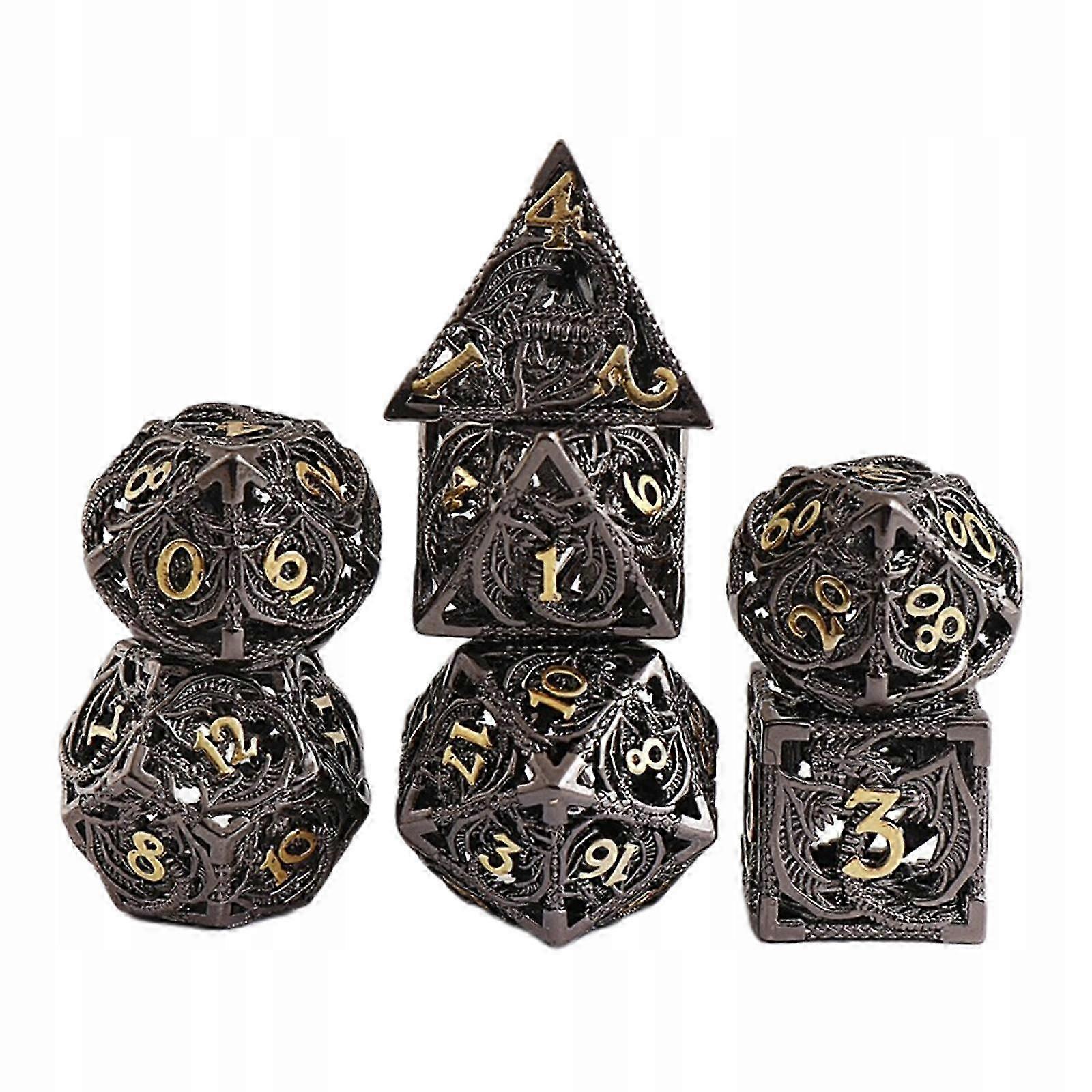 7 Pcs Antique Copper Metal Dnd Dice Set, Dragon Pattern,