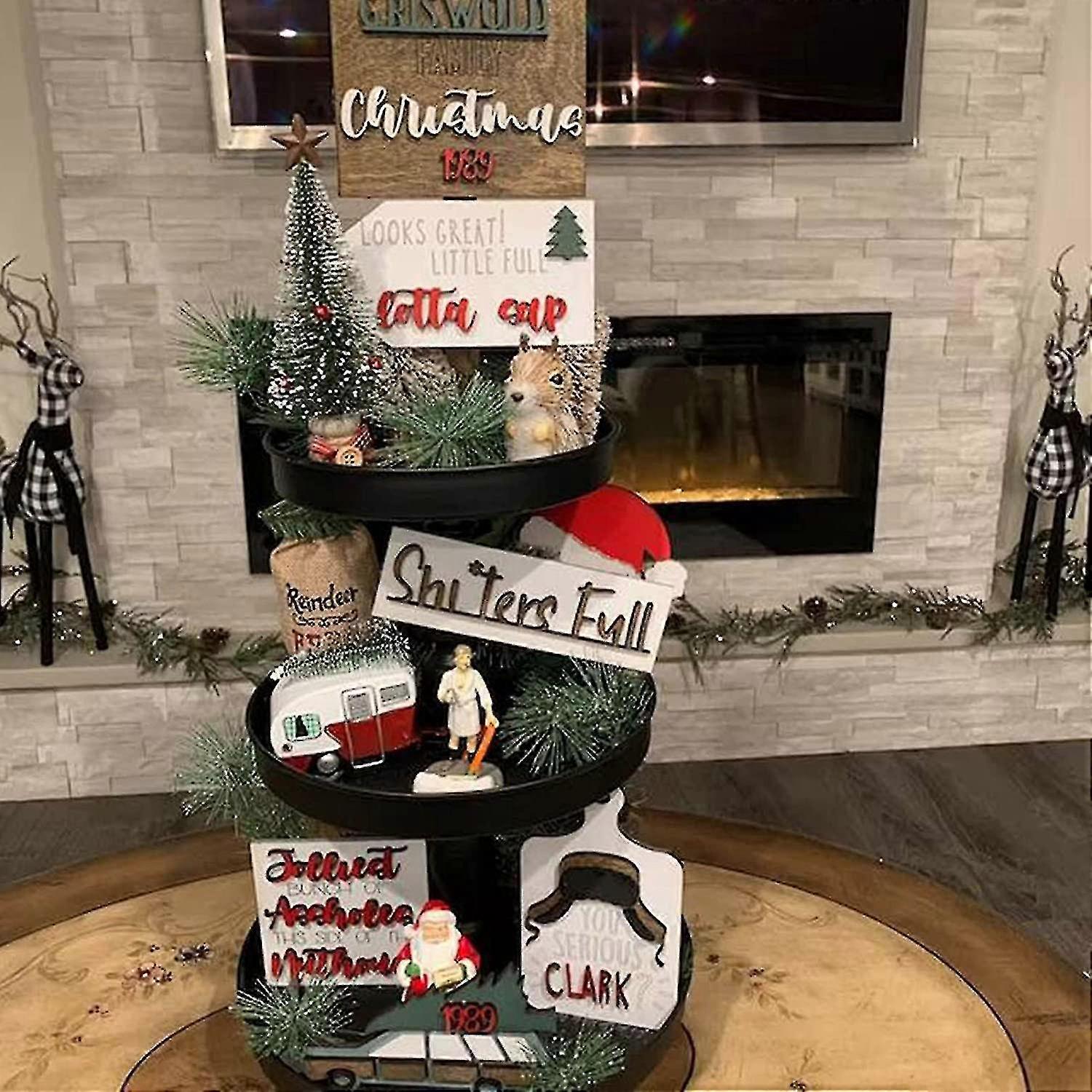 7pcs Christmas Vacation Tiered Tray Decor, Tray Not Include, Farmhouse Decorations Xmas Wooden Signs