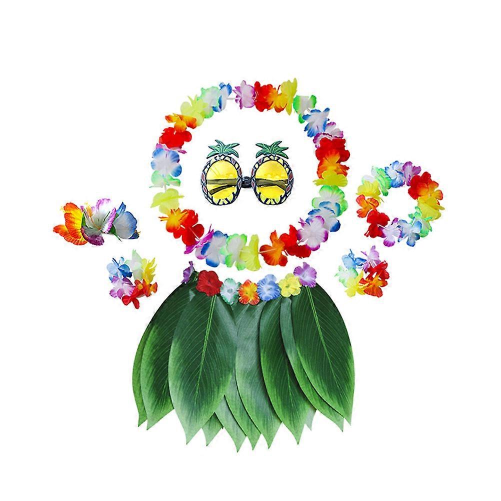7PCS Hawaiian Costume Accessories Kit For Parties Including Leaf Skirt And Assorted Color Wreath For Housewarming Celebrations