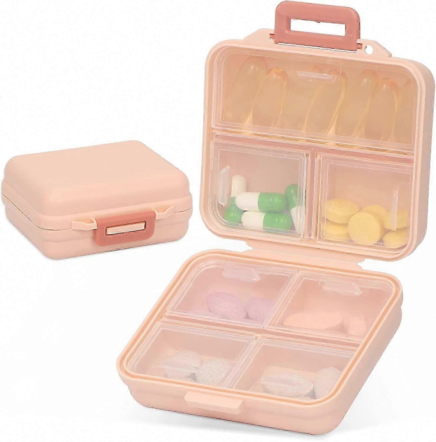 7 Compartment Portable Pill Box Travel Pill Box for Purse Pocket, Daily Pill Box Holds Vitamins, Pink