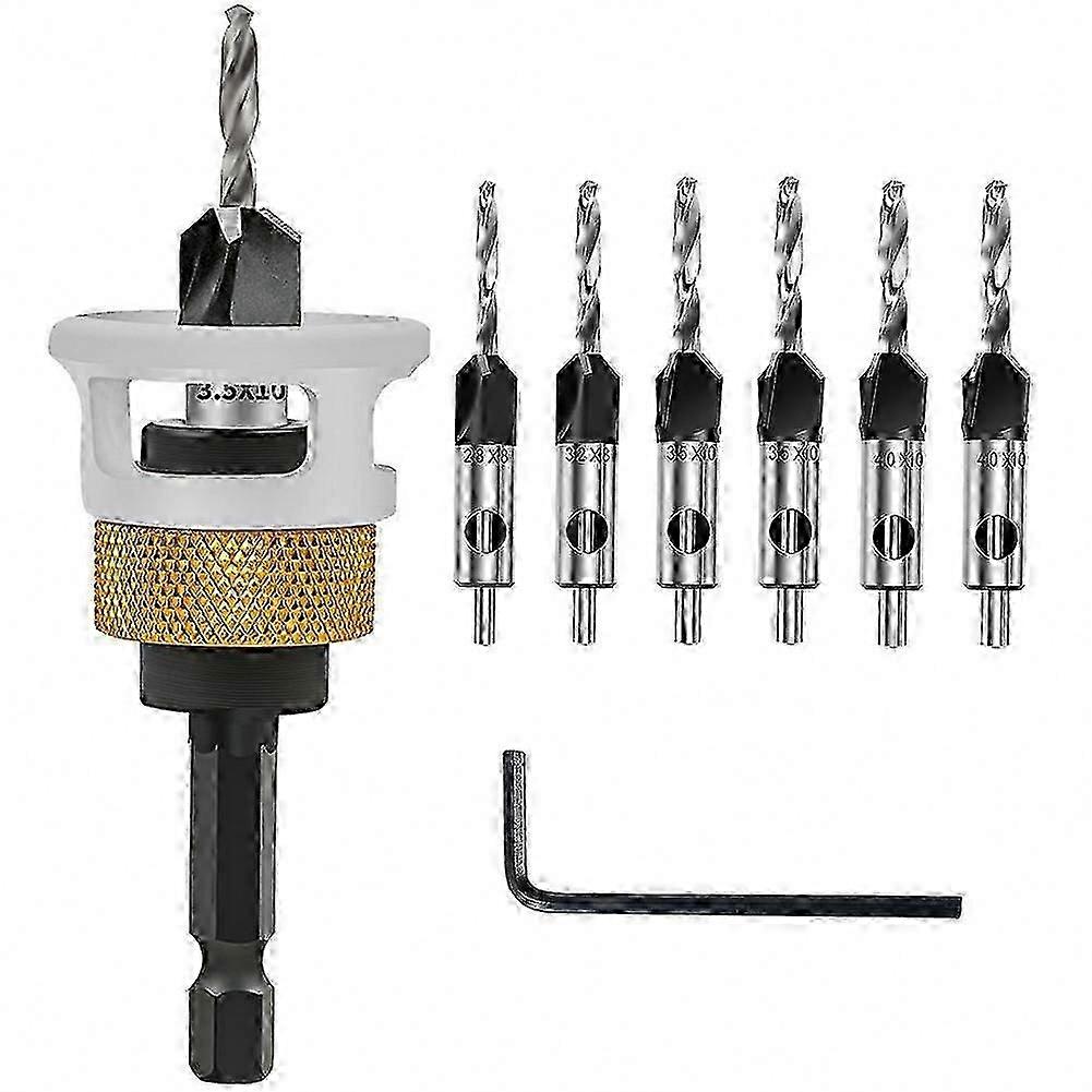 7-Piece Countersink Drill Bit Set with Adjustable Depth Stop for Woodworking