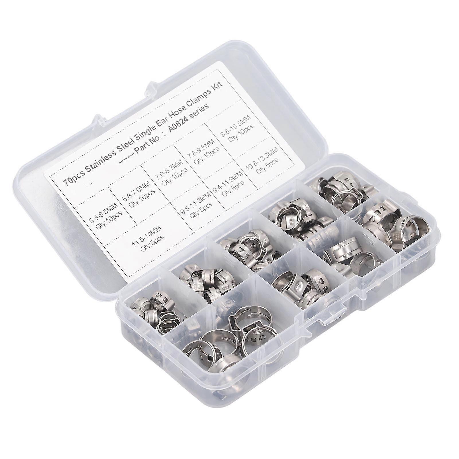 70Pcs Single Ear Hose Clamp Kit Stainless Steel Stepless 9 Specifications Hose Clamp Assortment Kit