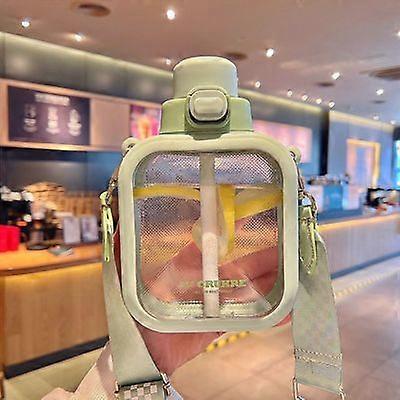 700 Ml Cute Square Flat Water Bottle Bpa Free With Straw Strap Summer Large Kids Student Sippy Plastic Cup Leak Proof Kettle
